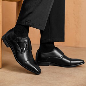 在庫あり 4010 メンクシューズ スリージョイント メンズ カジュアル ビジネス スリッポン ダブルバックル スクエアトゥ 革靴