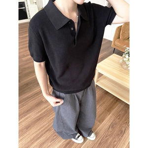 ポロシャツ ラペル 半袖 セーター メンズ オールドマネースタイル リラックス 英国 ビジネス スリム 外国貿易 越境卸売
