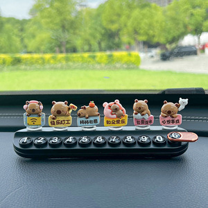 超萌卡皮巴拉临时停车号码牌创意可爱挪车电话牌香薰车内饰品摆件