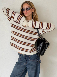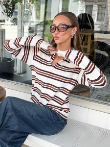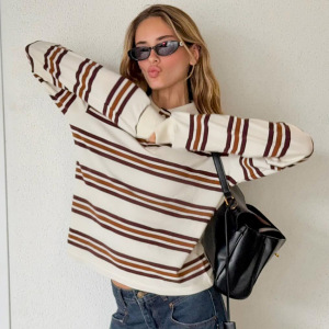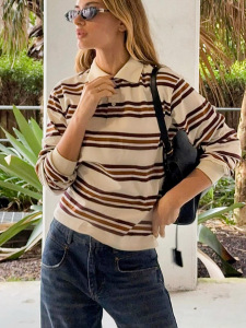 2025秋の新作ルーズストライプポロカラー長袖トップスデザイン気質カジュアルヨーロッパとアメリカの国境を越えた通勤
