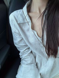 2025夏季别致上衣宽松慵懒风设计感显瘦百搭白色条纹V领防晒衬衫
