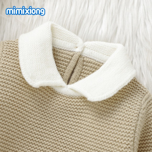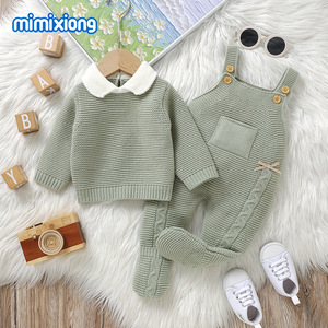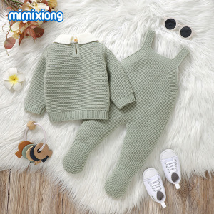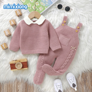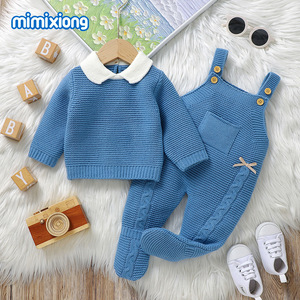 亚马逊新款婴幼儿宝宝针织套装套头毛衣+连体衣爬服哈衣两件套