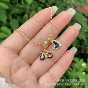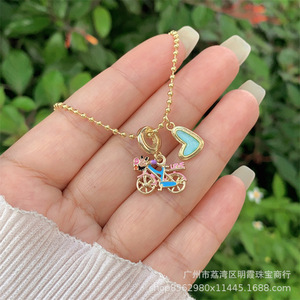 マルチスタイル銅メッキ18Kゴールドダイヤモンドフルジルコン自転車ラブコンビネーションデザインクロスボーダーオリジナル新製品オイルドリップ