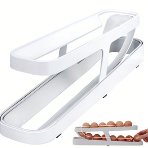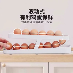 热销款跨境可贴标鸡蛋收纳盒冰箱侧门专用滚动鸡蛋托保鲜架子置物