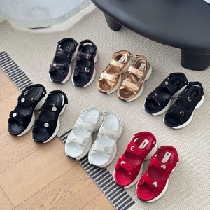 高バージョン 2025 新しいスタイルの小さな香りのワンラインサンダル、マジックバックル付き、夏の厚底菱形カジュアルで多用途な女性用シューズ