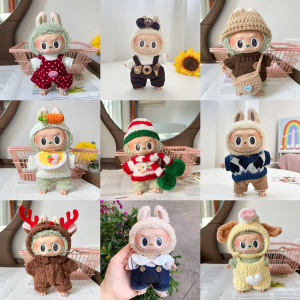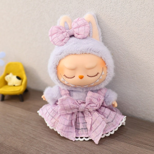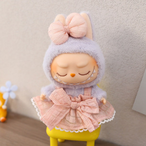 Labubu公仔衣服17cm心动马卡龙搪胶脸拉布布娃衣裙子换装着替配饰