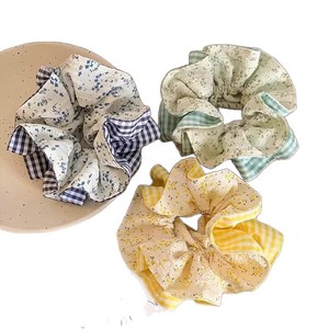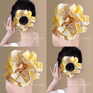 韓国の青いチェック柄の花柄ヘアゴム、女性用、高級、レイジースタイルのヘアロープ、ボールヘッド、大きな多用途の帽子