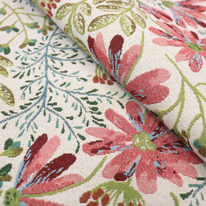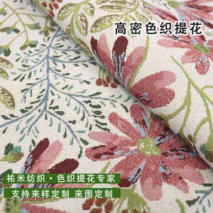 ピンクの花ポリエステル綿ジャカード生地婦人服子供服生地春と秋のドレス牧歌的なスタイルのジャカード装飾生地