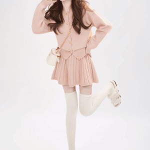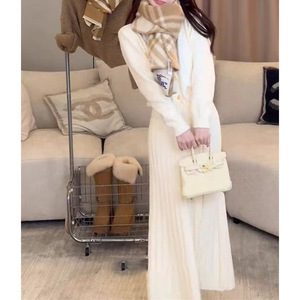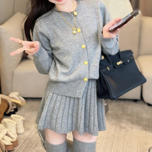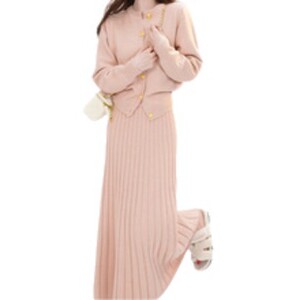 ニットスーツドレス2025秋新作小香風ニットカーディガン無地トップツーピースセット