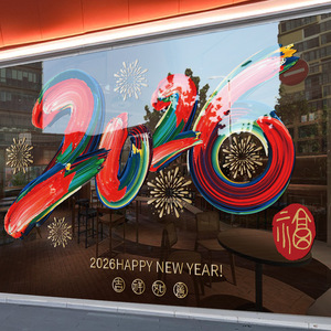 2026 年馬新年ガラスステッカーショップ新年窓装飾用品静電窓装飾窓ステッカーウォールステッカー