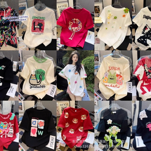 女性用半袖Tシャツ、露店卸売、夏の新作ボトムストップス、斤単位で混合ロットをサポート、メーカーから直接供給