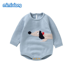 ins热卖春秋冬季新款男女宝宝针织狗狗提花连体三角包屁哈衣爬服