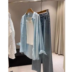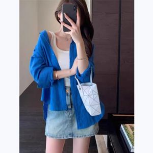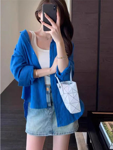 夏の女性用フレンチホワイトリネンシャツ、薄手でゆったりとした気質、オールドマネースタイルの高級コットンとリネンのシャツ、日焼け止めトップス