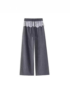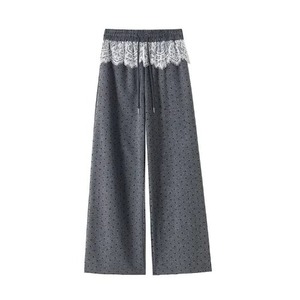 新款蕾丝拼接波点阔腿裤女春秋设计感休闲裤宽松显高直筒拖地裤