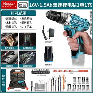 16V デュアルスピード リチウム電気ドリル 1.5Ah、バッテリー 1 個、充電 1 回 + ギフトパック