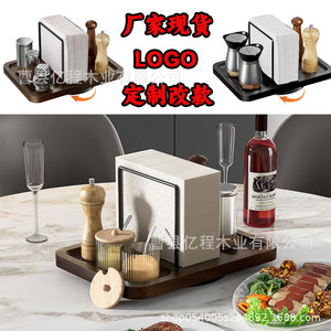 现货餐巾架桌子旋转金属餐巾分配器带盐和胡椒调味罐立式纸巾架