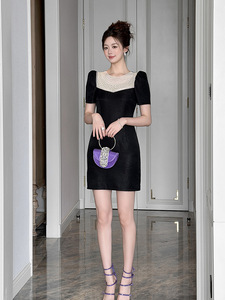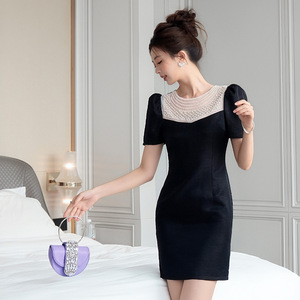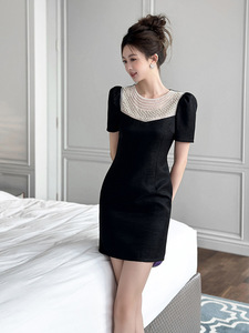 ヘビーパールカラーヘップバーンスタイルドレスリトルブラックドレス2025夏新作レディースウエストカバーヒップドレス9034