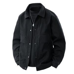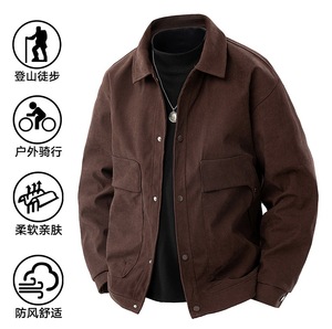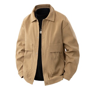卡其色外套男款春秋季衬衫翻领纯色男青年修身夹克初秋褂子上衣服