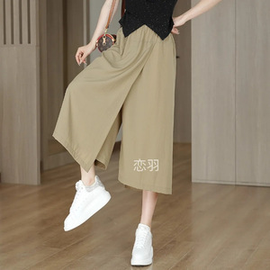 サマーキュロット2025新スタイル軽くて薄い、リバーシブル、ゆったり、スリム、小柄な女性向けワイドレッグパンツ、爽やかなクロップドパンツ