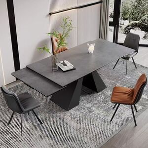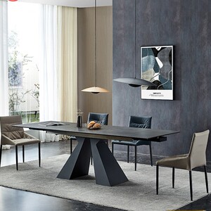 意式进口岩板餐桌伸缩多功能亮光餐桌椅网红现代简约轻奢家用小户