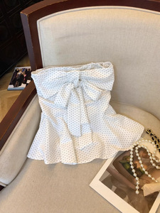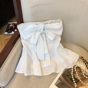 设计感蝴蝶结波点抹胸吊带背心女夏季纯欲风露背别致漂亮无袖上衣