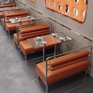ステンレス製ウォールマウントソファレストランコーヒーミルクティーダイニングテーブルと椅子の組み合わせ鍋バーベキューレストランインダストリアルスタイルのテーブルと椅子