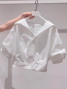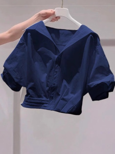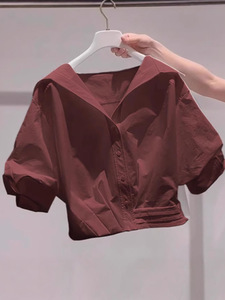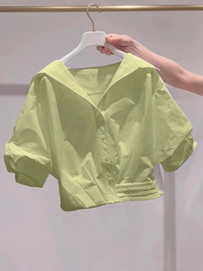 超見栄えの良いラペルパフスリーブシャツ女性用 2025 夏の新しい韓国シックなレイジースタイルルーズショートトップ