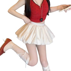 芭蕾风褶皱花苞半身裙女夏季高腰显瘦A字裙防走光遮胯ins蓬蓬短裙