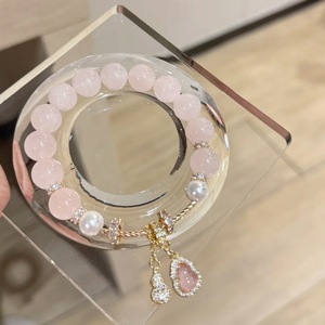 天然ピンククリスタルブレスレット女性の金箔夏ライト高級ニッチハイエンドブレスレット Douyin 人気の卸売