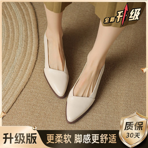 金步康玉兔通勤羊皮低跟女鞋新款粗跟软皮鞋软底四季鞋法式