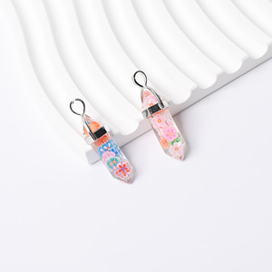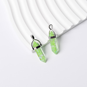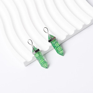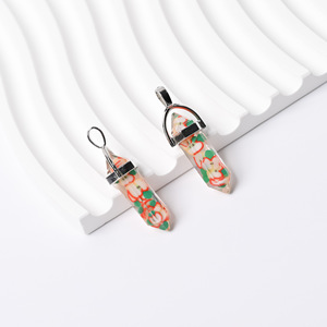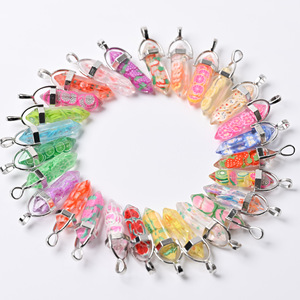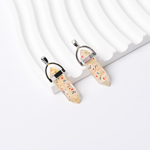 跨境热销树脂花朵水果六角柱吊坠亮片厂家双尖子弹头项链单坠批发