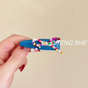 韓国ヘアアクセサリーカラフルなビーズリボンヘアピン 2025 新しいドーパミン甘いワンラインクリップサイド前髪クリップ