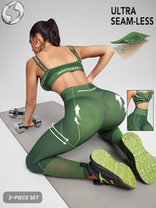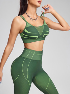 无缝女士运动瑜伽吊带防震无钢圈内衣高弹瑜伽健身短裤套装女士