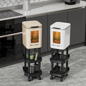 見栄えの良い新しいスタイルの腰をかがめない背の高いキッチンとリビングルームのゴミ箱、家庭用車輪付き、取り外し可能な大容量、収納付き