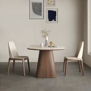 140*80*75CM [12mm ホワイトトラバーチンスレート + ウォールナット色]