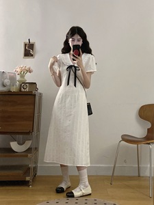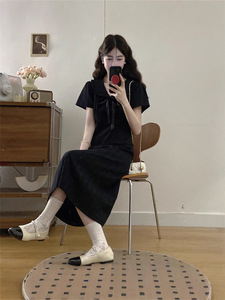 プラスサイズの女性の気質蝶半袖ドレスファットmm夏の新しいウエストを絞ってお腹をカバーし、スリムなコットンロングスカート