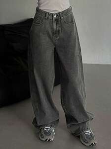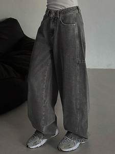 跨境时尚复古 Джинсы新款垂感直筒宽松高腰阔腿休闲长裤潮