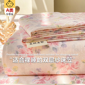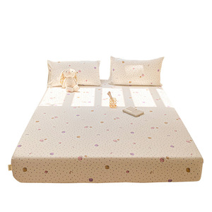 クラスA二層糸ボックスシーツ3点セットシングルピースウォッシュコットンベッドカバーマットレスプロテクター滑り止め母子グレードシングルボックスシーツ
