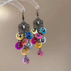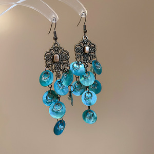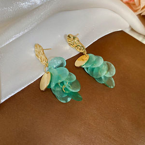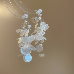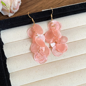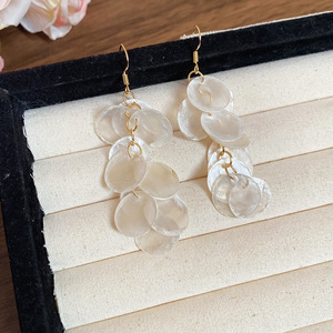 ヨーロッパとアメリカのクロスボーダーラウンドシェルリボンタッセルイヤリングライト高級ハイエンドイヤリングファッショナブルで多用途なイヤリング卸売