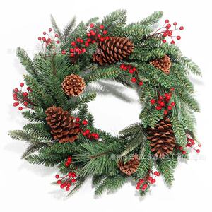 Yunhui クロスボーダー Amazon 松葉松ぼっくり赤い果実ガーランドドア吊り下げ家の装飾模擬緑の植物天然松ぼっくり