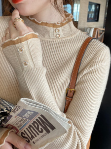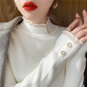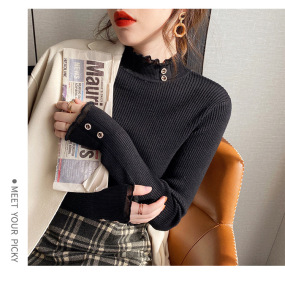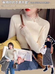 秋冬洋气2025年新款加绒毛衣蕾丝内搭针织上衣白色半高领打底衫女