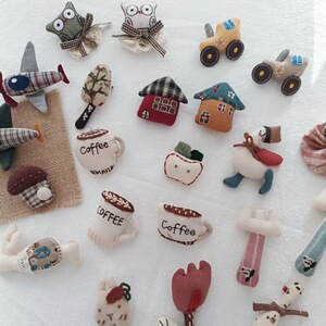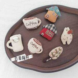 森系可爱布艺充棉胸针小动物小汽车小蘑菇小房子小汽车小蘑菇配饰