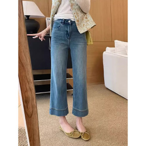 レトロな大きいサイズの女性用マイクロフレアジーンズ 2025 夏の新しいスタイルのファット MM 小さな伸縮性狭いバージョン 9 点パンツ