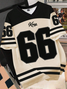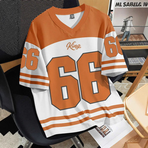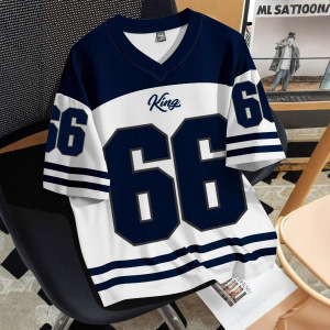 2025跨境新款外贸出海夏季男士爆款球衣66号数码3D印花V领短袖T恤