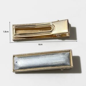 楕円形のピースが散りばめられた DIY 宋錦ヘアピン合金ジュエリークリップ生地ベースカモノハシクリップラウンドサイドクリップアクセサリー