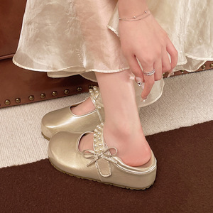 女性のための美しいフランスのフラットシューズ 2025 新しい夏スタイルのスカート付き、足が疲れにくい小さな革靴、メリージェーンシューズ