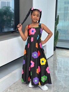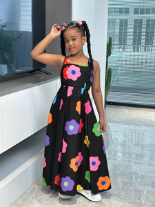 外贸童装休闲街别致的花卉印花意大利面条绑带连衣裙