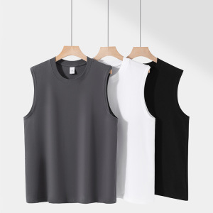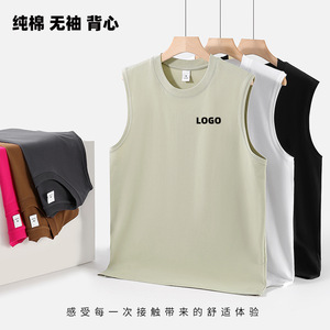 夏の純綿ノースリーブ Tシャツベスト通気性吸汗性ベーススポーツフィットネスルーズスウェット Tシャツ男性用プリントロゴ