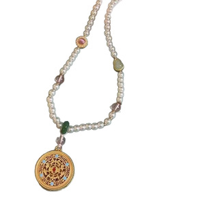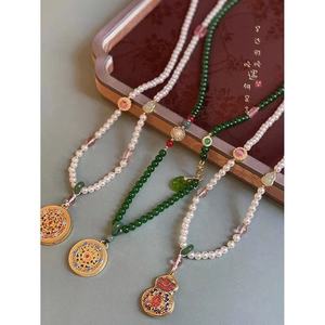 レトロな新しい中国風のラウンドビーズネックレス女性のための漢服チャイナドレス馬面スカートセーターチェーンファッションエスニックスタイルアクセサリー