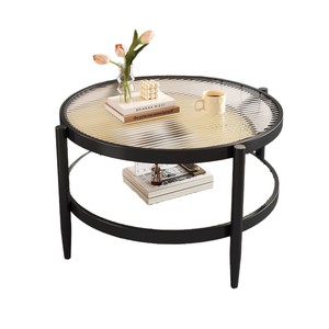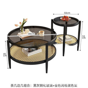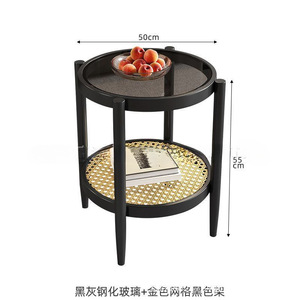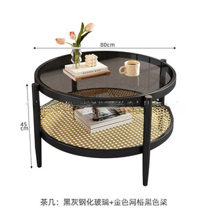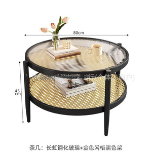 日本製籐コーヒーテーブルラウンド強化ガラスコーヒーテーブルリビングルームホーム小さなアパート日本製シンプルなサイドテーブル組み合わせ